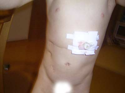 調子に乗っていたら、 胃ロウをテーブルで打ってしまった。 先日の浴びせ倒し事件から、 胃ロウから出血しやすくなってしまった。 |