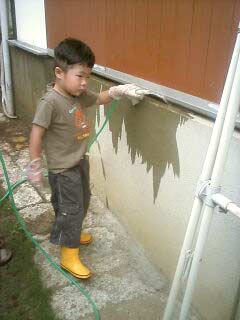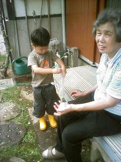 実家では、水遊びがお気に入り。 我がモノ顔だ。 |