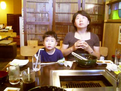 今日も家計を顧みず、 焼き肉屋デビュー。 もちろんSの食事は持ち込みだ。 ・・・テレビを見ているの図。 |