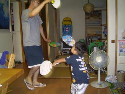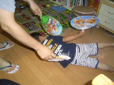 食後はまたもや闘いを挑まれる。 |