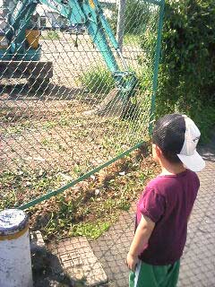 途中、現場を視察。工事車両は大好きだ。 |
