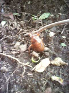これは珍しい、蝉の幼虫。