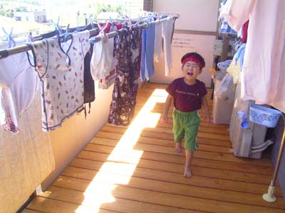 ベランダも、裸足で走って大喜び。 |