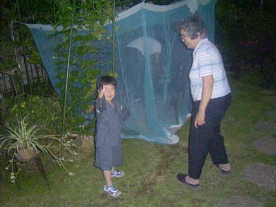Sは何故か虫に刺されやすいので、 蚊帳をつっていた。 |