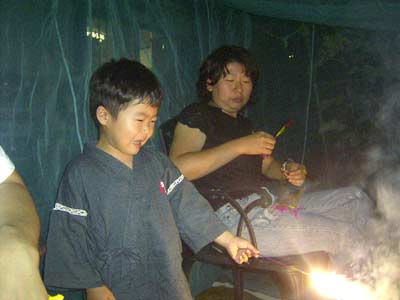危ない、危ない。 まだ花火の熱さを知らないので要注意だ。 火傷しなきゃ、わからないだろうな。 |