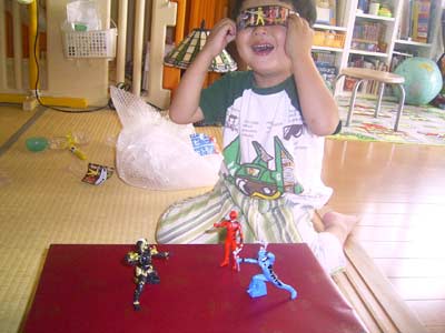 名古屋のジジババから、 ゲキレンジャーのオモチャを頂いた。 ガチャガチャで取ったそうだ。 (私にはエビスビールだ。) |