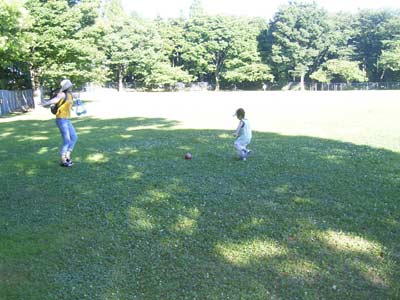 ボール蹴りも、ちゃんと相手に返すように。 毎回じゃあ、ないけどね・・・。 |