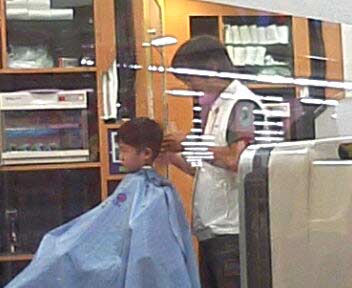 買い物がてら床屋に。 私が極端に刈り上げている後ろで・・・ |