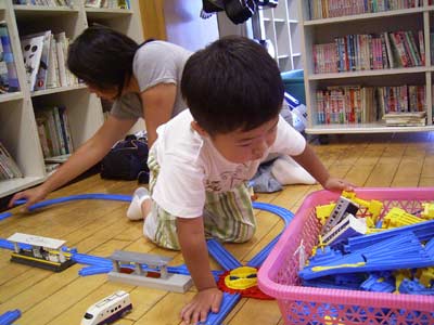 ここでも大好きなプラレール。 |