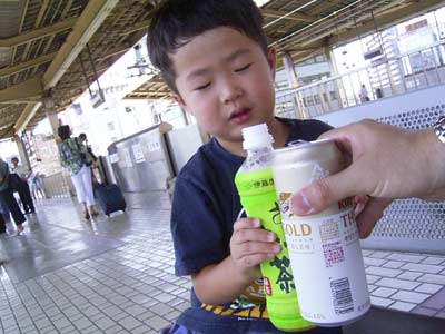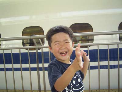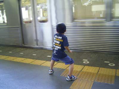 新横浜へ向かう途中。 中腰でバイバイはSのスタイル。 |