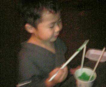 かき氷も初めて食べた。 もちろん脂肪・食物繊維共にゼロ。 摂りすぎはお腹を冷やすが、 少しなら味覚の発達のためにも良い。 (いろいろな味、熱・冷のバリエーションという意味で) |
