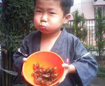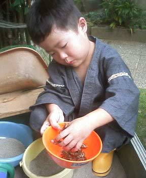 庭に出ては蝉殻を集めてきた。 |