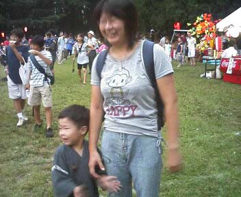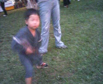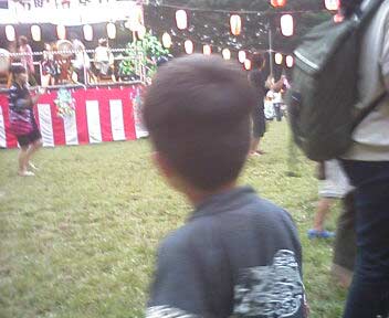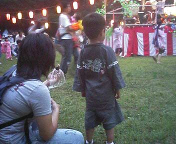 イキナリ踊りだすS。 どうやら太鼓をまねしているようだ。 この後、おママと踊りの輪に入っていった。 あまりに積極的で驚いた。 |