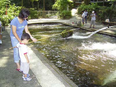 チェックインの前に最初の目的地、風布にじます釣り堀センターに到着。