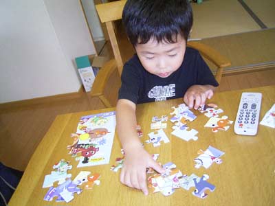 おママに呆れられると、 やおらパズルを取り出し・・・ |