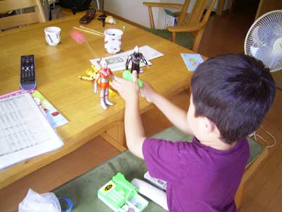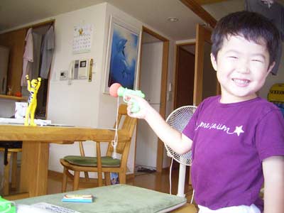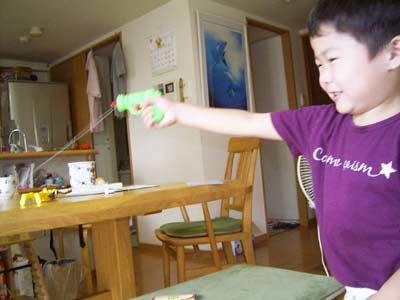 手をあげろ〜! もう先に撃ってンじゃん。 |