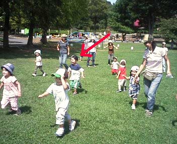 好位置からスタートしても、 アッという間に追い抜かれ。 それでもキャーキャー笑っている、 呑気なS。 |