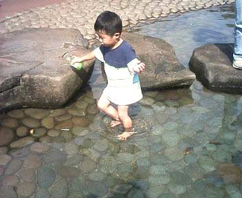 じゃぶじゃぶ池も、 「冷たい」 「(足の裏が)痛い」 と消極的。 |