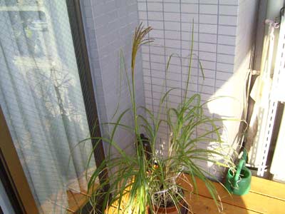 当家ベランダのススキ。 秋だねぇ・・・。 |