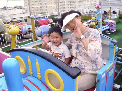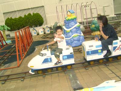 そう、「マンマのおばちゃん」こと、 ADさんとOKさんでした。 子の誕生日に是非とのお申し出に、 ノコノコ来てしまいました。 お世話になったのはこちらなのに・・・。 ご飯のワゴンが病棟に入ると、 どこにいても一目散に駆け寄ってきて、お手伝いをする。 そんな子は未だかつていなかったそうだ。 乗りモノにもバンバン乗らせてもらって、大満足のS。 もう、一生分乗ったよな? |