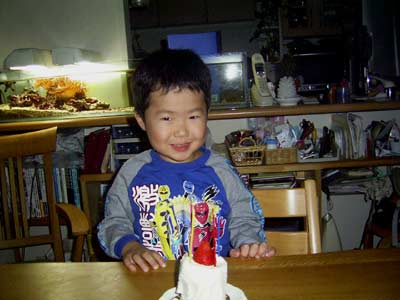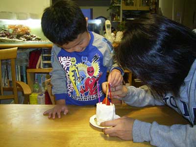 生まれて初めて、本物のロウソクとケーキ。 |