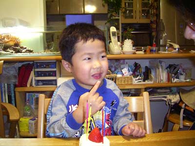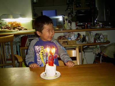 4本は一気に吹き消され。 一瞬の出来事だったが、笑顔が残った。 |