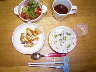 ちなみに夕食、枝豆ご飯。 枝豆は、タンパク質も脂質が多い。 これまで使えなかった一品である。 唐揚げも、油を使えるようになった。 |