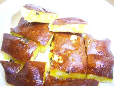 ハロウィーンだから、カボチャのホットケーキ。 脂肪分の制限緩和で、 初めてバターを塗ることができた。 ただSには味が重すぎるようだった。 |