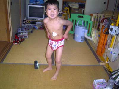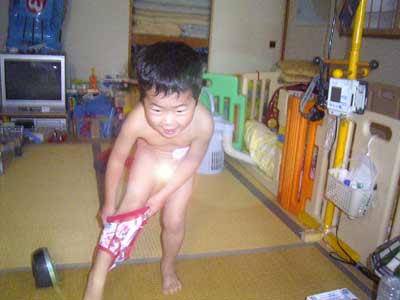 冗談抜きで、Sは片足立ちができない。 ので、普段の動きの中にそれを取り入れる。 掴まらずにパンツはく練習だ。 |