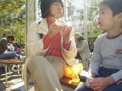 午前中から午後の回の整理券をとったので、 結構前の方にいけるはず。 |