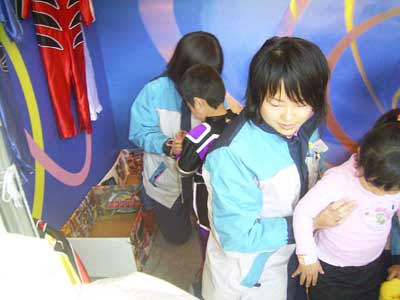 ゲキレンジャー変身写真撮影コーナー。 Sはゲキバイオレットを希望。 |