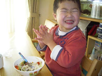 子供に返事をさせる練習だ。
