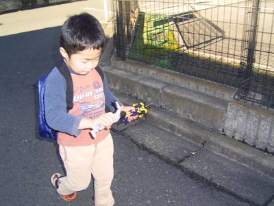 公園に行くのにも、 プレゼントのウルトラマン類を抱える。 |