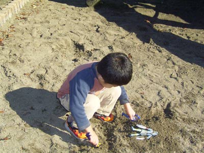 まあこういう日は、まず砂場だろ。 遊具は一段落してからにしよう。 |