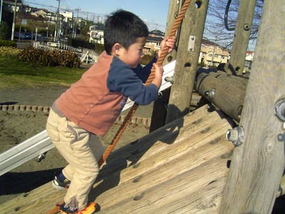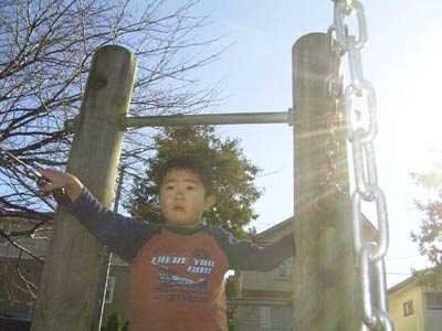 あまりの風の冷たさに、身の危険を感じる。 そろそろ遊具をやって帰ろうか。 |