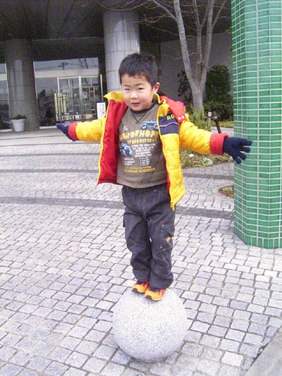 2歳くらいの男の子が走ってきて、隣の球にぴょんと飛び乗る。
