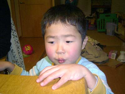 苦いと顔をしかめるS。 あまりにかわいそうなので、 もう1欠片、ミルクチョコをサービスした。 |