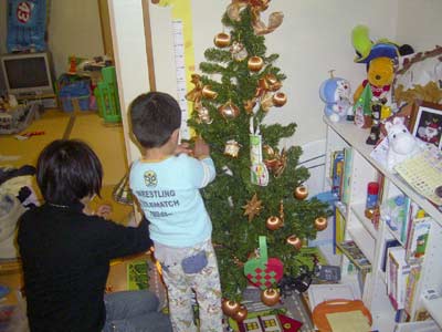 ツリーは今日で撤去する。 その前に記念撮影。 |