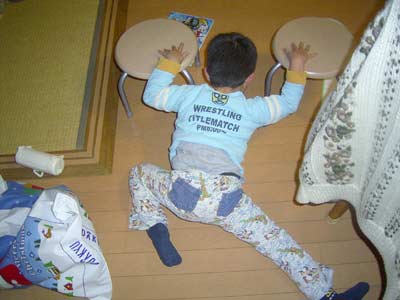 私が時々やる、腕立て伏せを真似ているようだ。 ・・・ケンカ売ってんのか? |