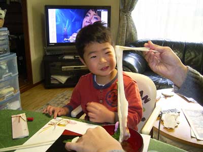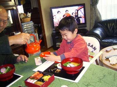 お屠蘇は、ジュース。 私はお酒のつもりで飲んで「うぶっ!」ってなった。 てっきりSの分だけだと思ったが、 全員分だったのだ。 当然か。 |