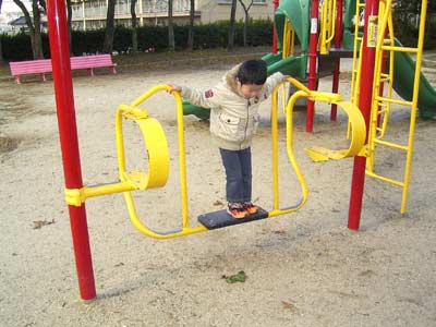昨日は全く乗れなかった遊具も、 今日は少し乗ることができた。 やっぱり回数だよな。 今年は飛躍の年にしような。 |