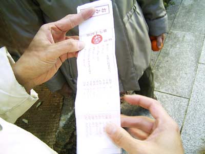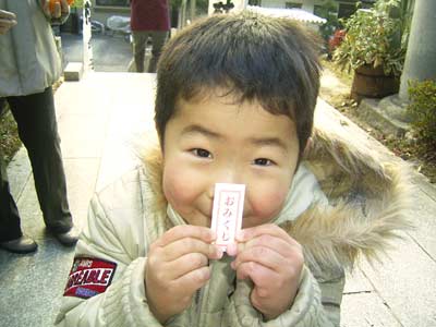 名前からして「小吉」かと思ったが、 (意味わかるかな??) 何と大吉であった。 病気、よく治るって。 |