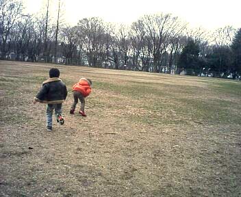 2人で遠くのフェンスまで競争したり、落ち葉を蹴散らしたり。
