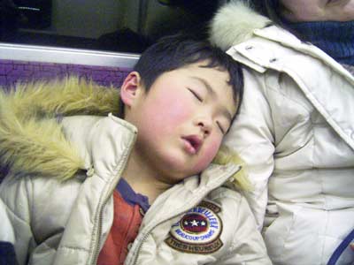 電車の中は、さすがに最後は眠ってしまったが、 到着するとムックと起きて電車にバイバイをしていた。 (家まで抱っこ抱っこだったが・・・) |