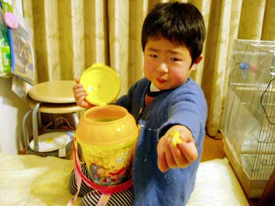 が、そうそう言うこと聞くワケない。 食べ物で買収しようとしても、無駄さ。 昨日買ったバケツポップコーン。 |