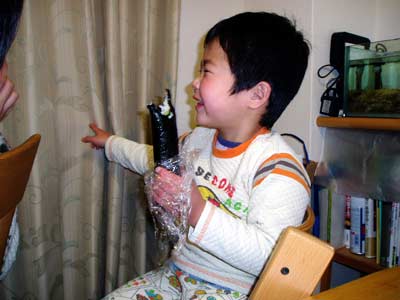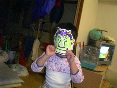 夕方、鬼のお出まし。 豆まきも、鬼が大好き。 |