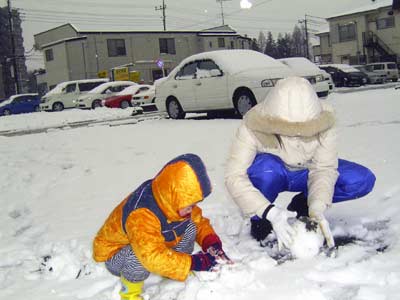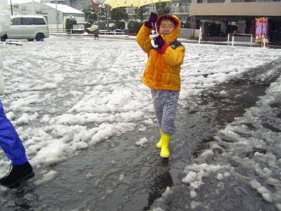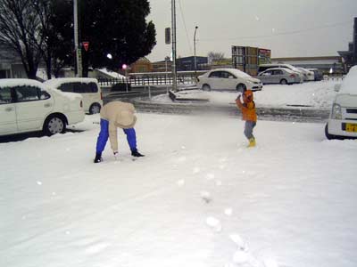 その後、合戦勃発! 普段の鬱憤を雪玉に混め、Sにぶつける。 |