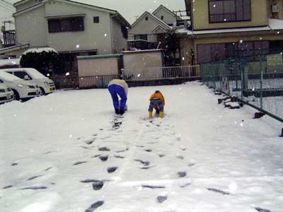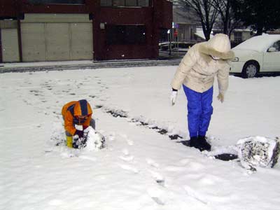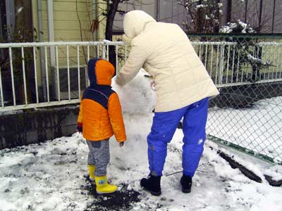 完成間際。 おママは意外に雪だるま奉行だった。 |