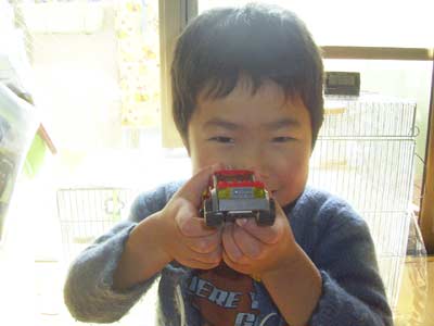 バラバラになったレゴ車。 おママが苦心して組み立てた。 Sにっこり。 |
