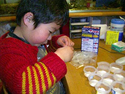 久しぶりに薬を作らせてみた。 驚いたことに、 何処に何を入れるか殆ど完璧に覚えていた。 というか、 薬袋の数とタッパの数とでちゃんとルールを理解してる。 それにこぼすことも殆どなくなっている。 手先が器用になっている。 |